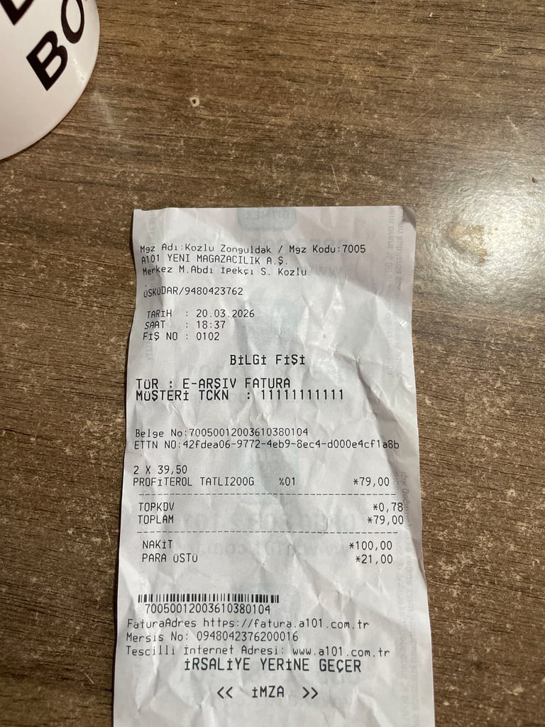 Zonguldak Kozlu merkezde faaliyet gösteren A101 marketten dün satın aldığım profiteroller, son k...