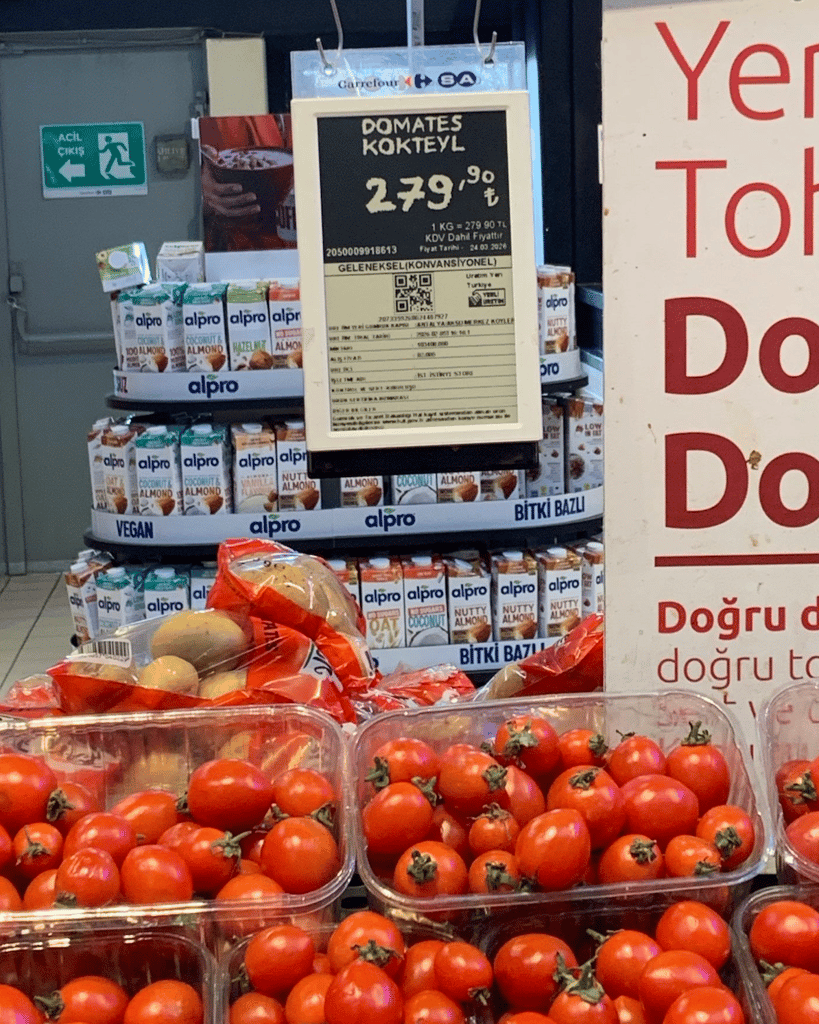 İstanbul Sarıyer'de faaliyet gösteren CarrefourSA mağazasında kg fiyatı 280₺'ye satışa sunulan domatesler meyve sebze haline 60₺'ye geliyor,...