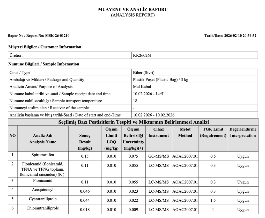 Kendi laboratuvarlarında yaptığı analizlerle "Pestisit tespit edilmedi" dedikleri biberlerden AB'de yasaklı madde çıktı!