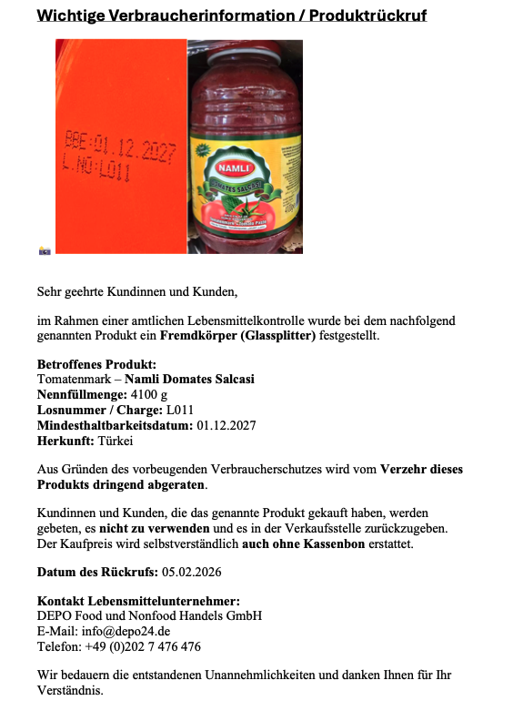 Avrupa Birliği Gıda ve Yem Uyarı Sistemi RASFF'ten yapılan bildirime göre Türkiye'den İspanya'ya ihraç edilen bebek mamasında arsenik tespit...