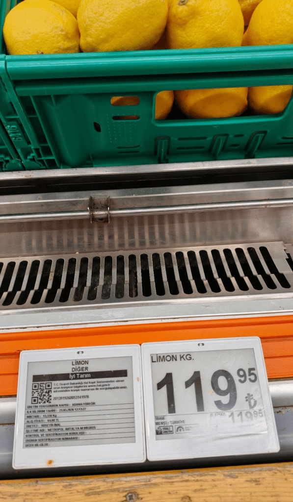 Bu görüntüler de Antalya Muratpaşa'daki Migros'ta çekildi. Adana'daki üreticiden alınıp, hale 45₺'den giren limonların market reyonunda kg f...