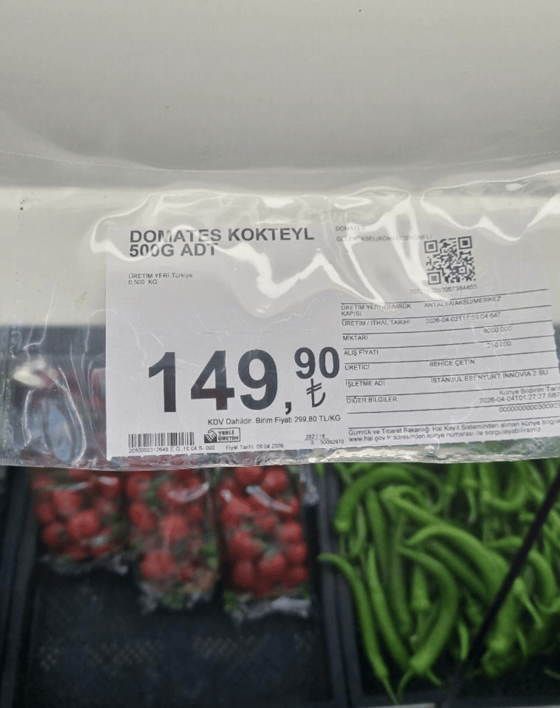 CarrefourSA mağazasında gördüğünüz domatesler 500 gr'lık paketlerde kg fiyatı 300₺'ye satışa sunuluyor. Domateslerin hale giriş fiyatının is...